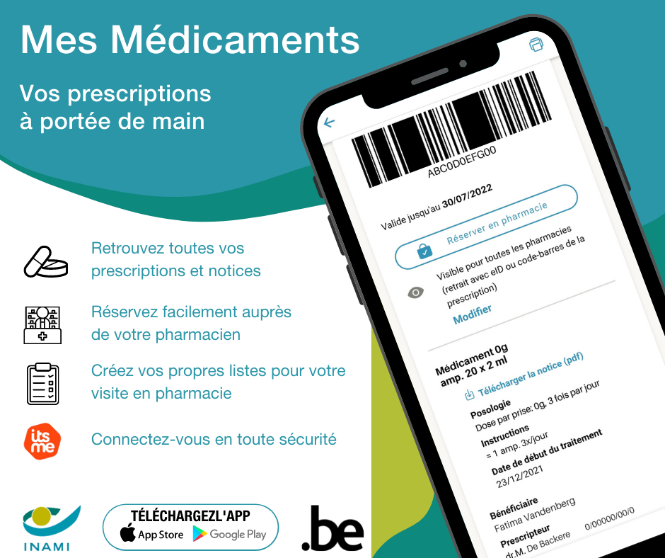 - Téléchargez l’application « mes médicaments » vous permettra d’avoir une vue d’ensemble de vos prescriptions, la posologie de vos médicaments, … en toute sécurité !
